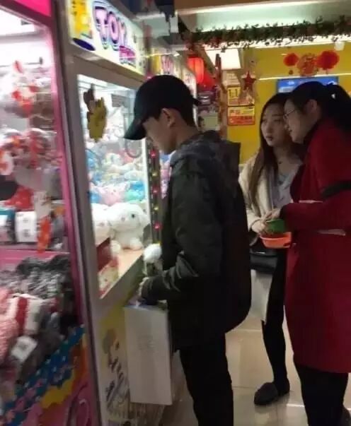 灿烈欧巴穿着拖鞋在街头抓娃娃