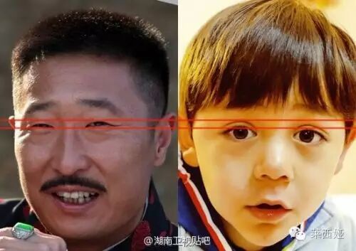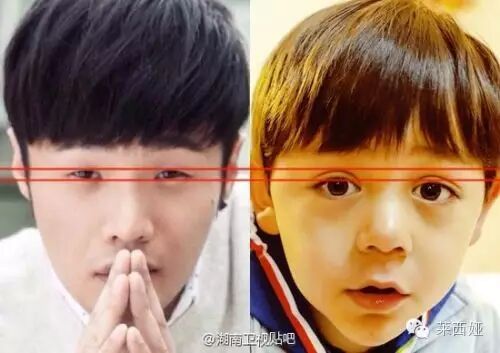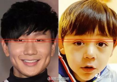 让大家对这个看脸的世界更绝望的是,爸爸去哪儿的官博发了一张李荣浩和诺一眼睛的对比图,原来李荣浩的眼睛还不如诺一的双眼皮大,图片中还特意用用红色划出了标线,难怪要向李荣浩说对不起。