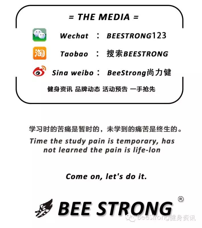 Bee strong健身资讯是为中国年轻健身爱好者提供的学习交流平台,提供欧美各种健身资讯,在这认识更多的健身人士鼓励更多的人健身。只要坚持,你会发现,拒绝退场的结果令人惊呀!