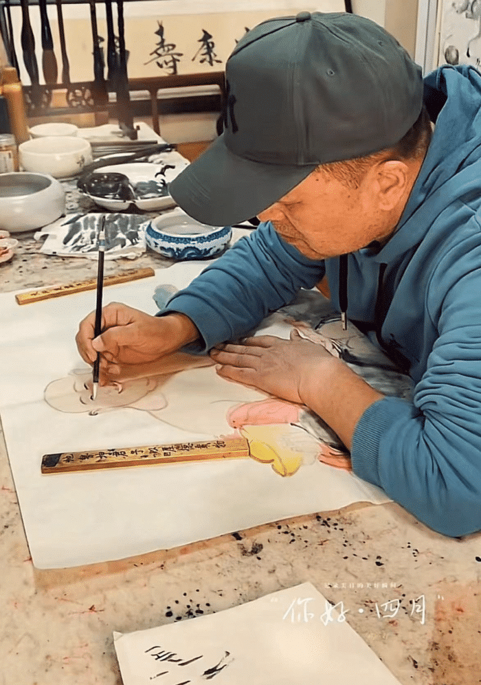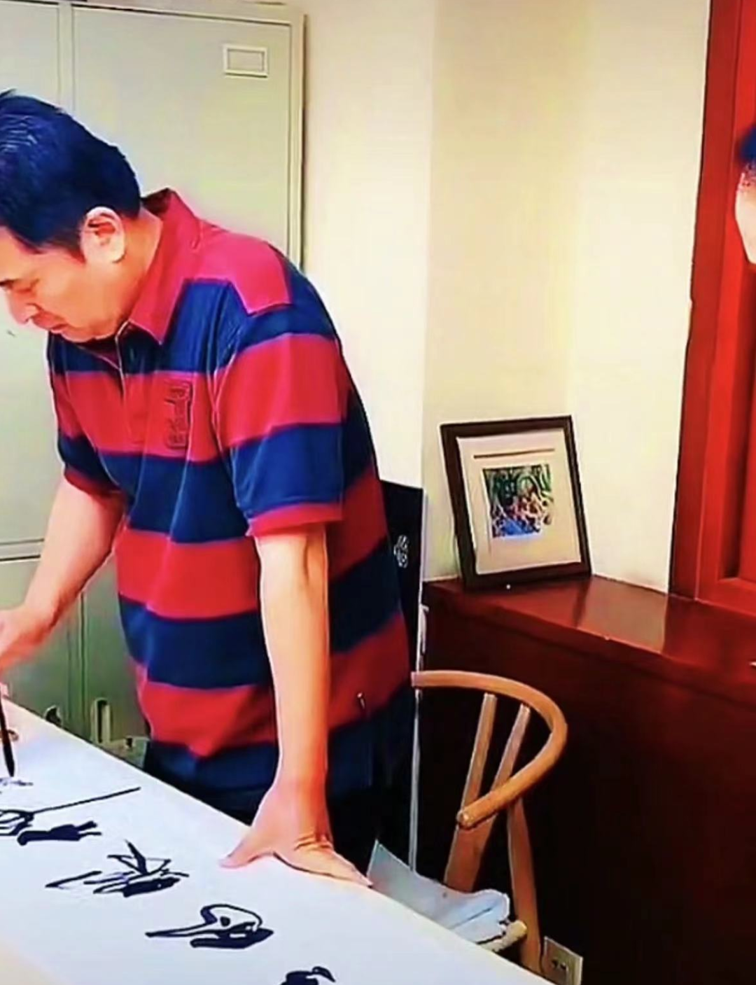 从画面来看,退圈后的毕福剑寄情书画,闲暇之余就在家写诗作画,陶冶情操。他当天穿着一件色彩亮丽的条纹上衣,身材有些发福,看上去大腹便便的模样。他拿着画笔,在纸上挥毫泼墨,非常专业。