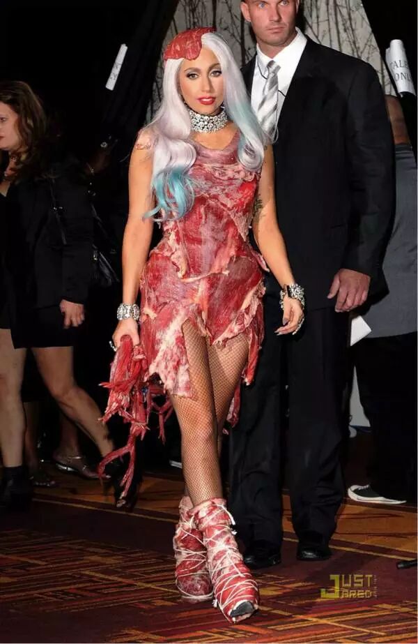 但这身衣服不仅仅是把肉穿在身上,是Gaga的另一种发声方式,她坚持每个人都要为自己的权益发声,坚守自己的信仰,不要像骨头上的肉那样任人宰割。