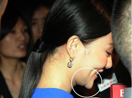 还有现在刚为人母的Angela Baby,早前在节目中也曾出现饺子下巴,被人怀疑填充假体。虽然Angela Baby事后曾经狂揉自己下巴力证没有整形,但是对AB如此怪异的下巴,很多人还是持怀疑态度。