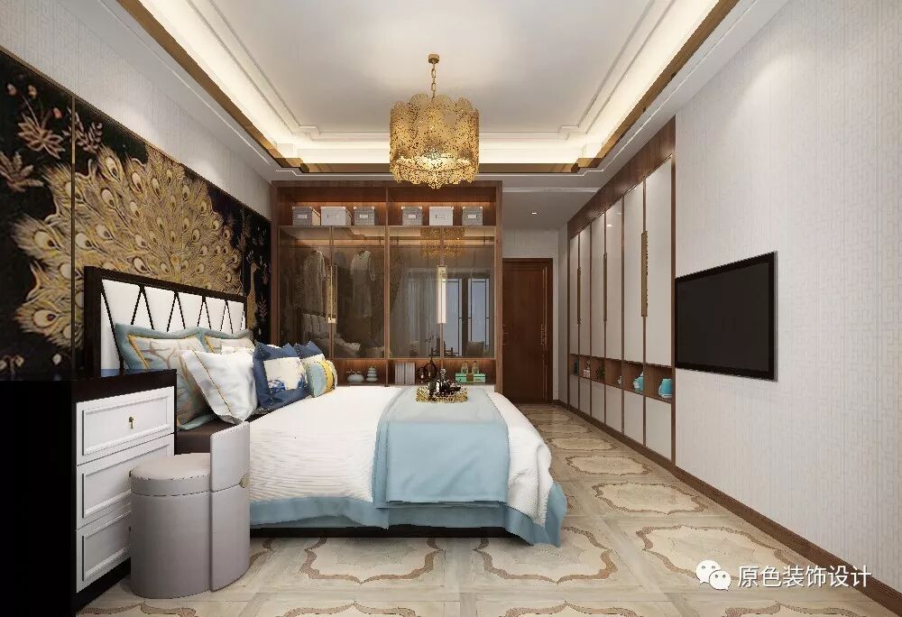 整体空间的搭配十分娴熟且自成一派,着眼于当代和古典的隔空对话和在当代陈设中注入古典的底蕴。整个空间的家具十分现代,且在色彩上十分具有张力,中式元素则遍及所到之处,但丝毫不显得过于陈旧,反而带有一种与生俱来的尊贵感,饰品少而精进,且都带有中式神韵。在装饰画的选择上十分考究,有直接用古画作为装饰的,有利于浮雕形式展现的,也有更为当代的印刷形式呈现,当然还有以当代艺术品呈现的漆画屏风,整体空间既当代前卫,又充满了古典的气息和韵味。