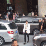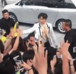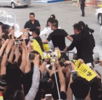起先,走出区域想和粉丝接触,但是被后面的工作人员追赶上来拉走。