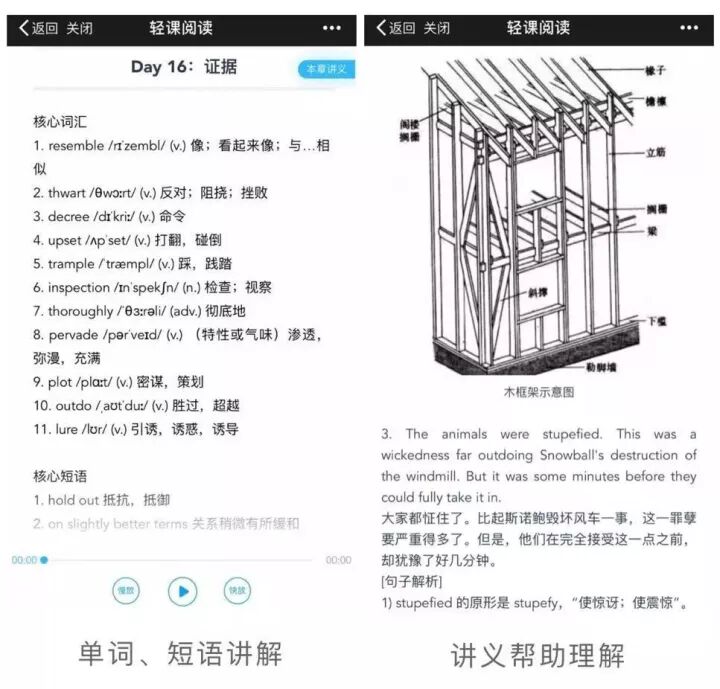 轻课阅读计划在你开始当天的阅读训练之前,就已经提炼出了你需要认识的核心词汇、短语。以便你能够顺畅地完成今天的阅读。