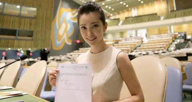 2014年李冰冰受邀在联合国气候峰会上,面对200多个国家的领导,发表全英文致辞。和莱昂纳多并肩而立,随意交谈。