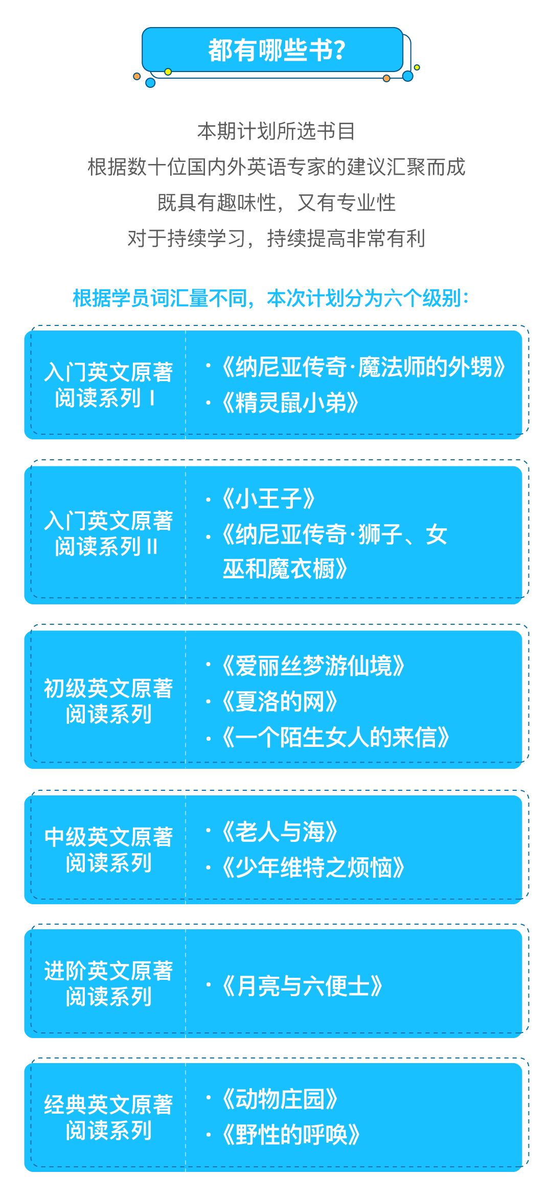 我本人英语一直特别差,背了10年单词也就那样。后来因为对英文原著比较感兴趣,刚好又看到这个课程。根据词汇量评估,课程一共给我推荐了最合适的3本书,加起来一共接近10万字。