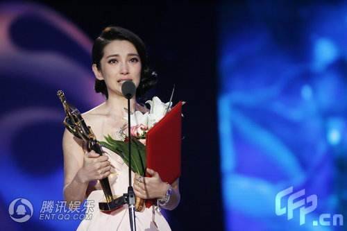 终于在第四年,凭借《云水谣》获得最佳女主角时,她泪流满面。