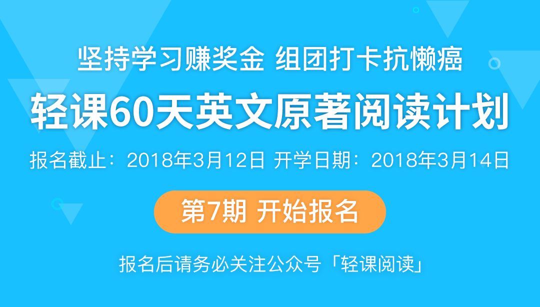 所以,渴望提升英语,提升素养,增长见识的人,你都需要参加一次轻课60天英文原著阅读计划开始报名。