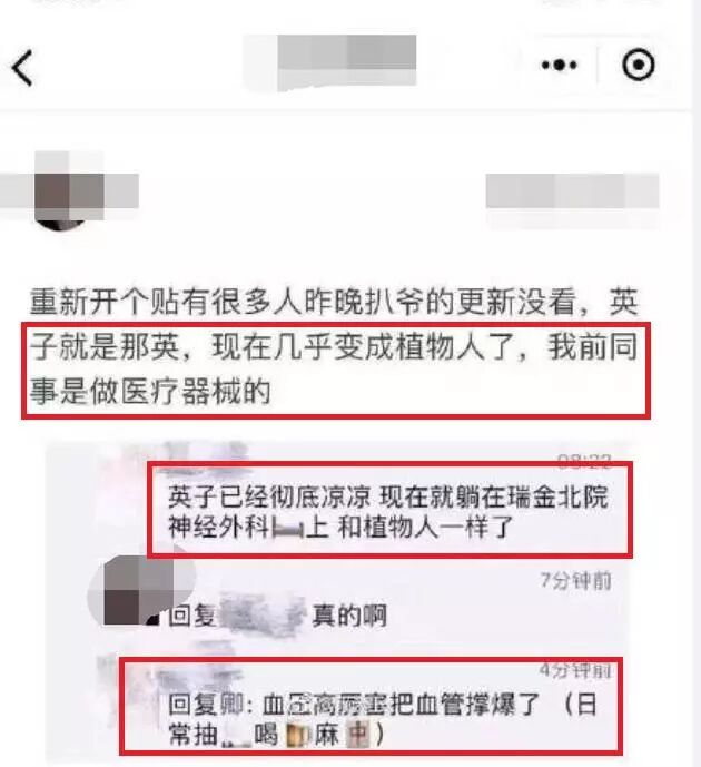 消息传出有两天了,当时有网络爆料称那英因长期抽烟、喝酒、打麻将导致高血压把血管撑爆,目前正在某医院接受治疗,但已几近成为植物人,传的有模有样的。