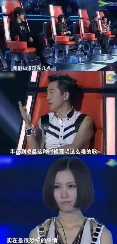 庾澄庆的点评就更加犀利了,直接用上了"恐怖"这个词,最后节目播出的时候他这段还被剪掉了。