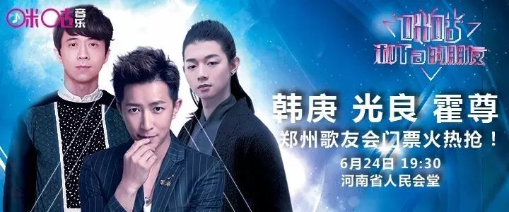6月24日,韩庚、光良、霍尊郑州歌友会,隔着0.01公分的距离在你耳边甜言蜜语,与你一起迷失音乐的世界。