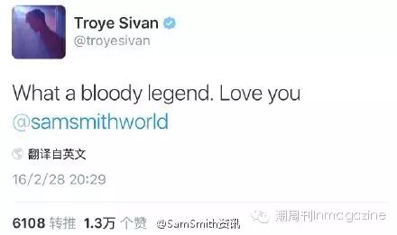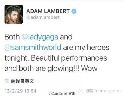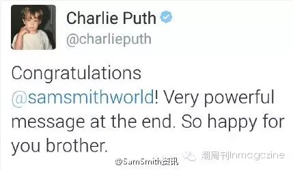 Charlie Puth、Troye Sivan和Adam Lambert发推恭喜骚姆获得奥斯卡最佳原创歌曲奖!