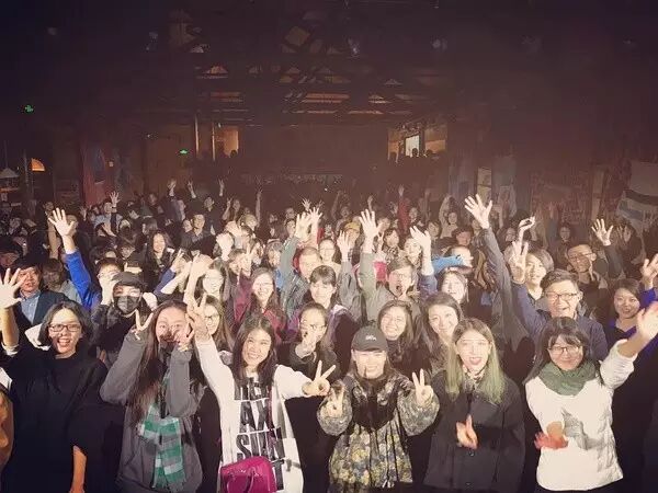 △活动现场捧着乐童x联邦走马出品的年度最摇滚《噪音乐历》,抱着乐童为其出品的周边“蚂蚁”T恤喜笑颜开的张楚