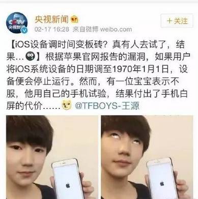 近日,网上流传:“把iPhone或其它iOS设备日期设置为1970年1月1日,就会停止运行,瞬间变砖。”很多好奇网友尝试,瞬间中招。