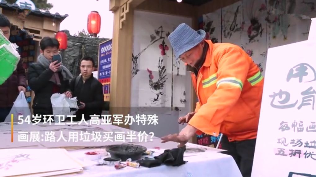 西安54岁环卫工人办画展