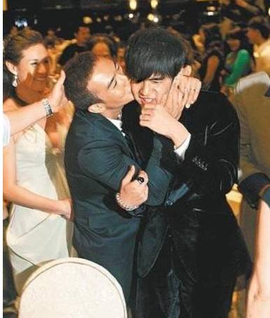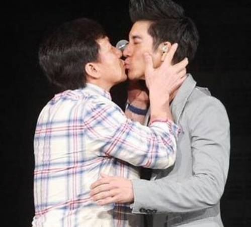由于《大兵小将》里有出色合作,王力宏和成龙成为了好朋友。而成龙大哥,一像给人大方、豪爽,以至于居然在公开场合和王力宏亲嘴。