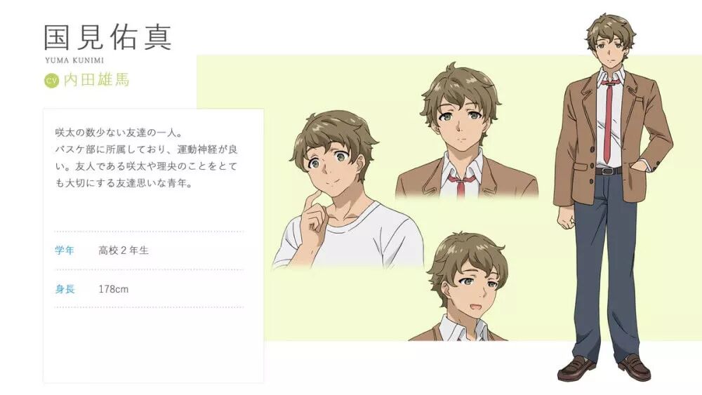 咲太为数不多的朋友之一。隶属于篮球部,运动神经很好。把咲太和理央当成重要的朋友的青年。