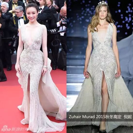 倪妮身着Zuhair Murad 2015秋冬高定系列礼服佩戴Tiffany混合型切割钻石耳坠、Tiffany狭长形切割钻石手镯以及Tiffany Soleste圆形切割钻石戒指现身第69届戛纳电影节开幕红毯。我的最爱呀,真是气质型美女。