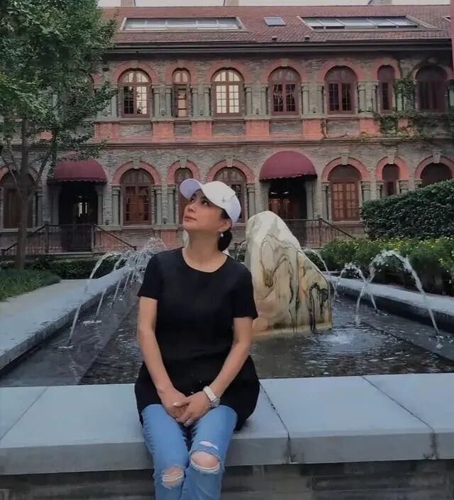 以前李玲玉就是属于长得比较的胖,看脸型也知道了有很多的肉。一件棕色宽松的衣服穿起来真的像是一个大妈一样,这个颜色还有款式都不是很显年轻的那种了。