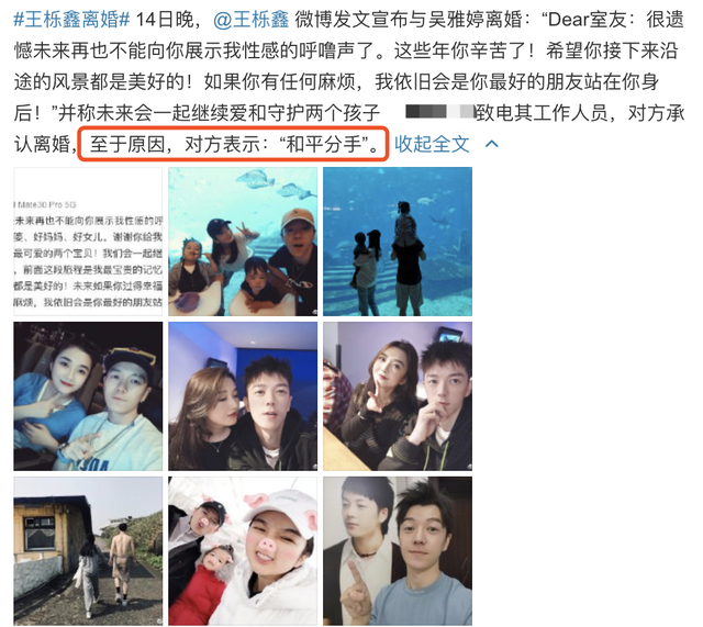 而且王栎鑫的文字如此平静,不知道到底是什么原因,会让两人闹到离婚,还可以做最好的朋友?