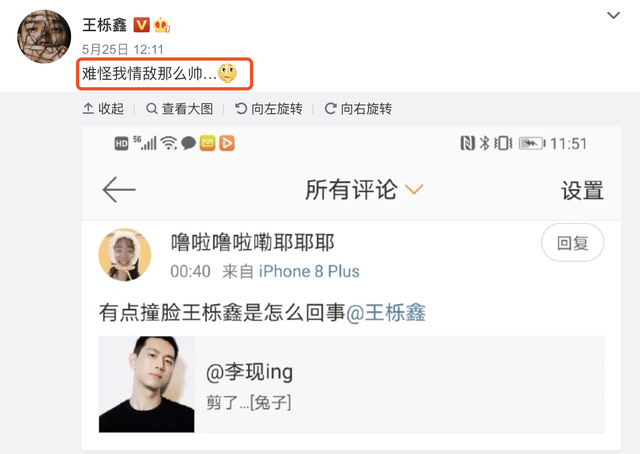 虽然很多人都羡慕吴雅婷嫁给了王栎鑫,但是她却经常追星易烊千玺和李现,今年5月份王栎鑫还截图了李现的照片,很多人都说他和李现撞脸,王栎鑫对李现还以“情敌”相称。