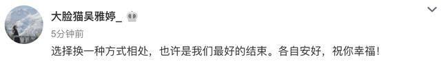 随后吴雅婷也发文,没有那么啰嗦:选择换一种方式相处,也许是我们最好的结束。各自安好,祝你幸福!