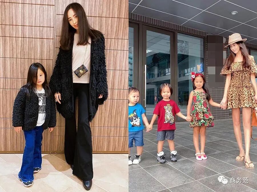 必要时,还会拉着孩子们晒母女穿搭,时尚辣妈人设也是她不可或缺的标签。