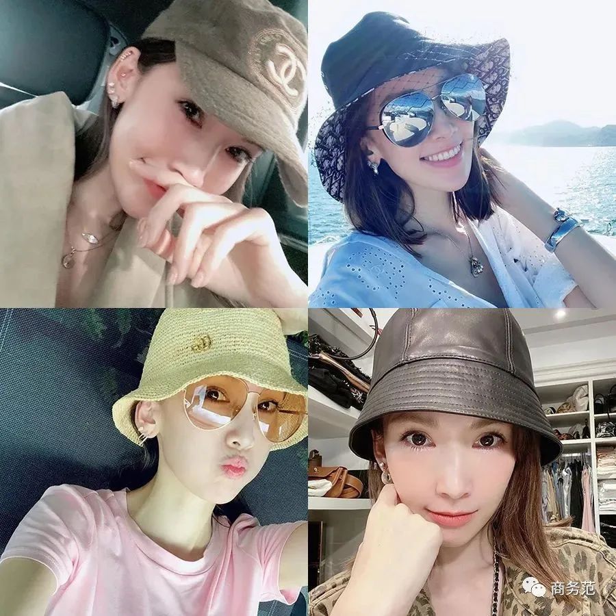 她日常对大牌的喜爱度,大都体现在帽子等配饰上,CHANEL、Dior、Gucci的帽子不重样。