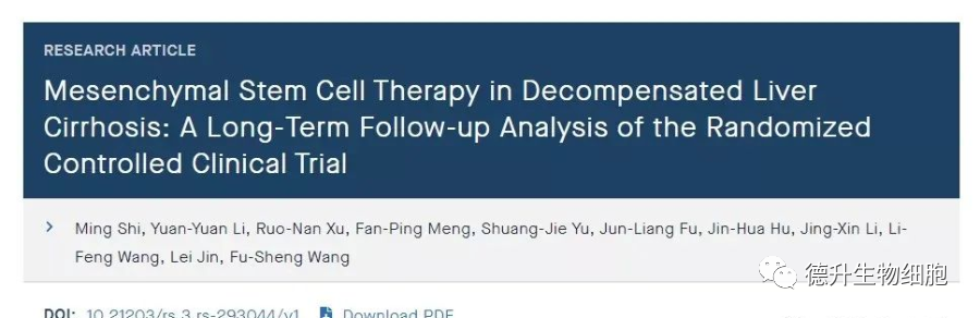 近日,王福生院士团队在国际肝病学杂志(Hepatology International)发表的研究结果(预印本)显示,脐带干细胞显著改善了失代偿性肝硬化的肝功能及长期生存率。