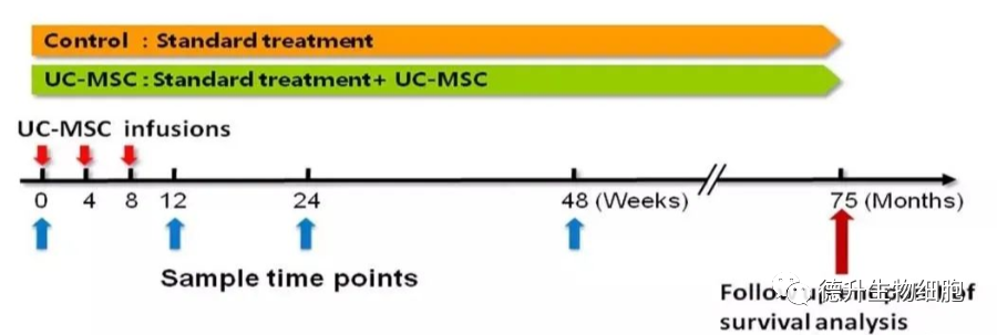 从长期安全性上看,脐带干细胞治疗组没有发现明显的副作用和治疗相关并发症,没有比常规治疗更高的风险。