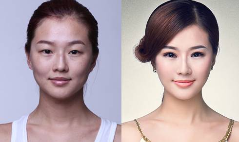 看看,脸部轮廓上且不说,单是这双眼睛也是让人大吃一惊啊!以前眼睛虽大,但是比较内眼角外眼角都比较窄,眼睛显得又大又圆。现在是一双欧式大双眼,美得不可一世。