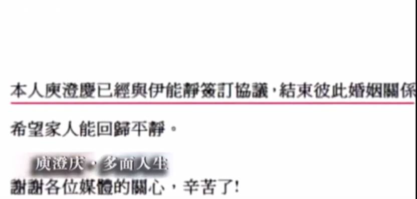 直到2015年,庾澄庆新恋情公布,他才在一次专访中提到前一段婚姻,并表示因为“牵手门”才最终决定离婚。