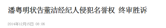 不过离婚的原因,双方都各执一词,董洁方也指责潘粤明嗜赌成性。潘粤明在声明中痛斥董洁现任经纪人离间他们夫妻之间的感情,后来还表示已经起诉了董洁经纪人。