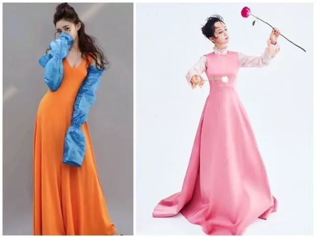 林允半扎丸子头橙色无袖的长裙,搭配蓝色喇叭袖十分又特色,而杨紫一身粉红糖果色的连衣裙,手执鲜花,满满的甜美风。