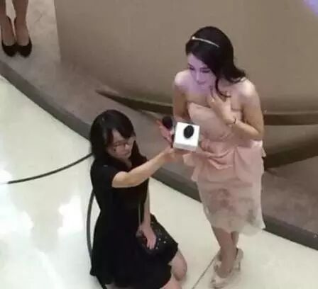 最后这一位真是想翻白眼啊,秦岚竟然让助理跪着拿话筒,世界太可怕,助理不好当啊!