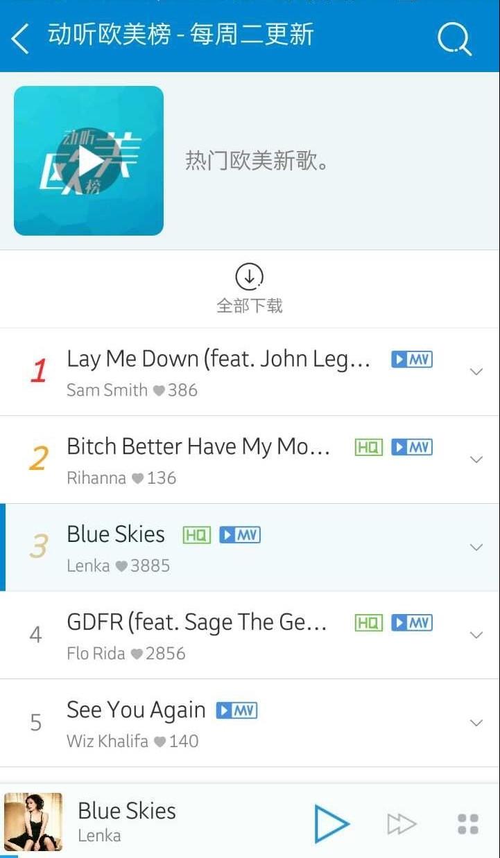 天天动听欧美榜上则连续数周排名前三;