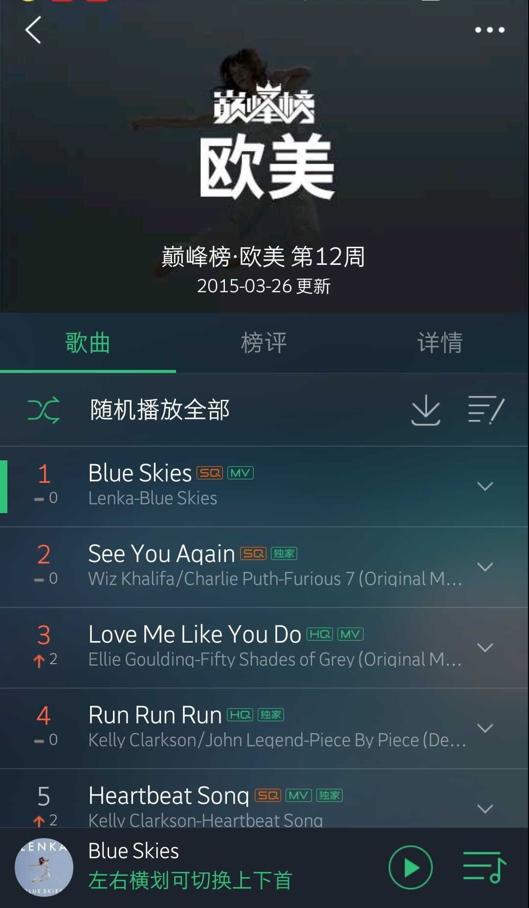 (QQ音乐欧美巅峰榜连续四周蝉联第一)
