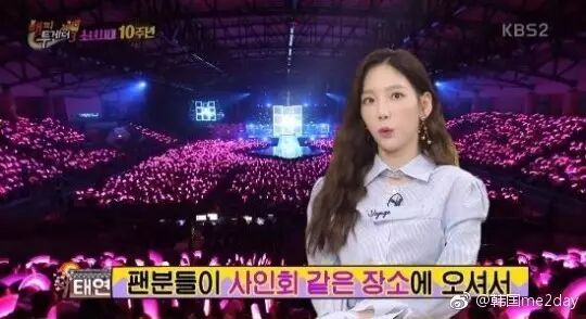 10日晚播出的《HT3》中少女时代成员们作为嘉宾出场,徐贤因拍摄电视剧未能到场。节目中MC问泰妍“听说亲自抢过自己演唱会的门票?”泰妍回答说“粉丝们在签名会上说抢不到票,就想着该有多难抢票阿就亲自试了试。还以为手机坏掉了,网页根本刷不出来。”