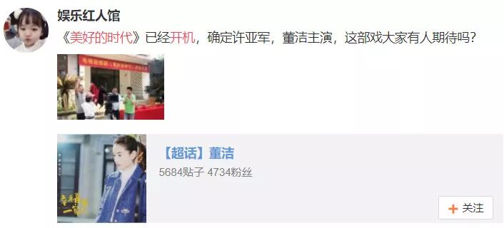 不过目前《美好的时代》拍摄地官网已经曝光了拍摄信息,该剧由许亚军、董洁主演,女一号是董洁无疑!