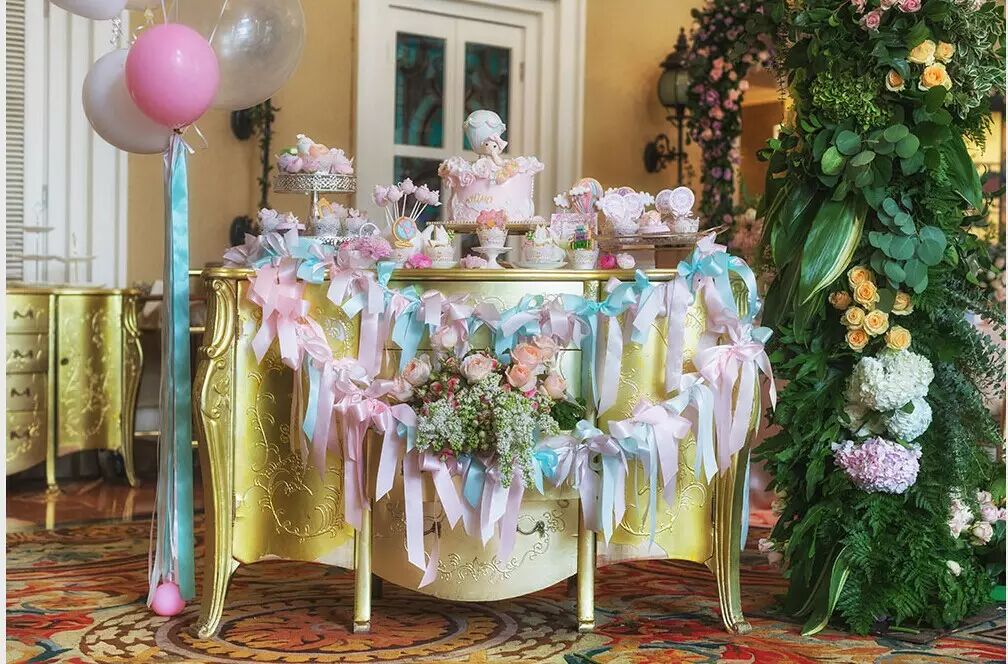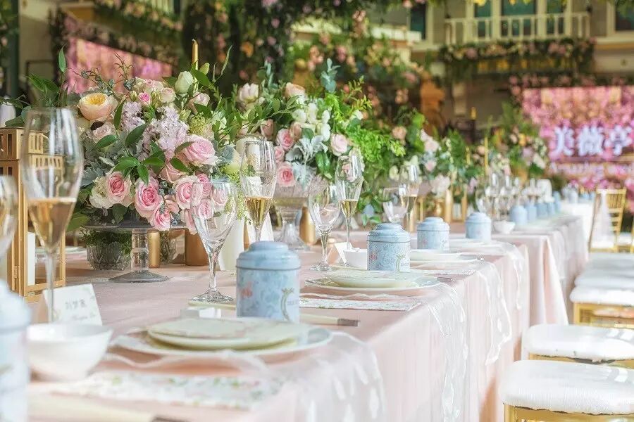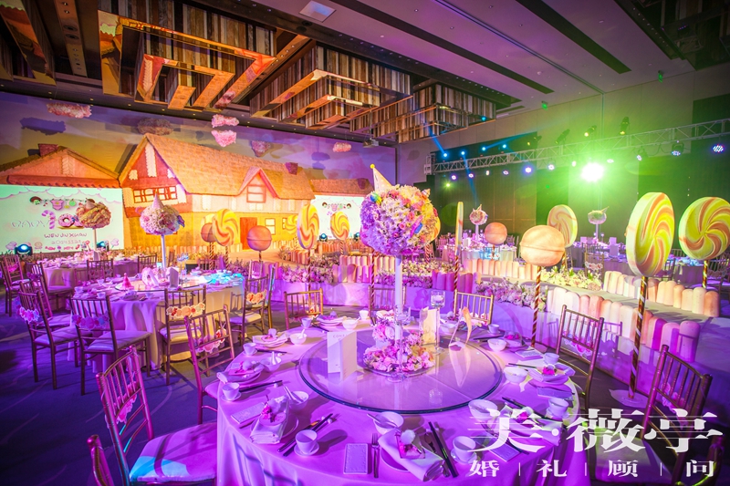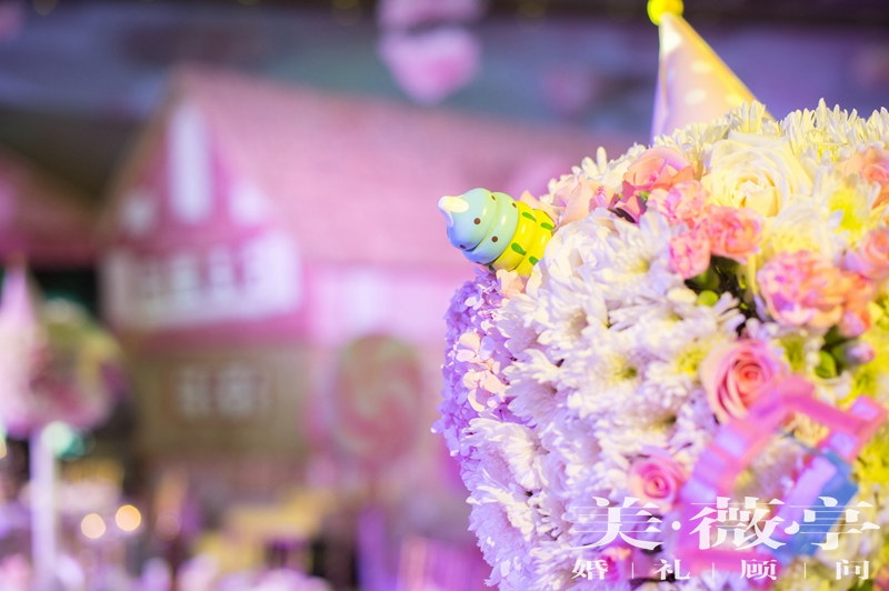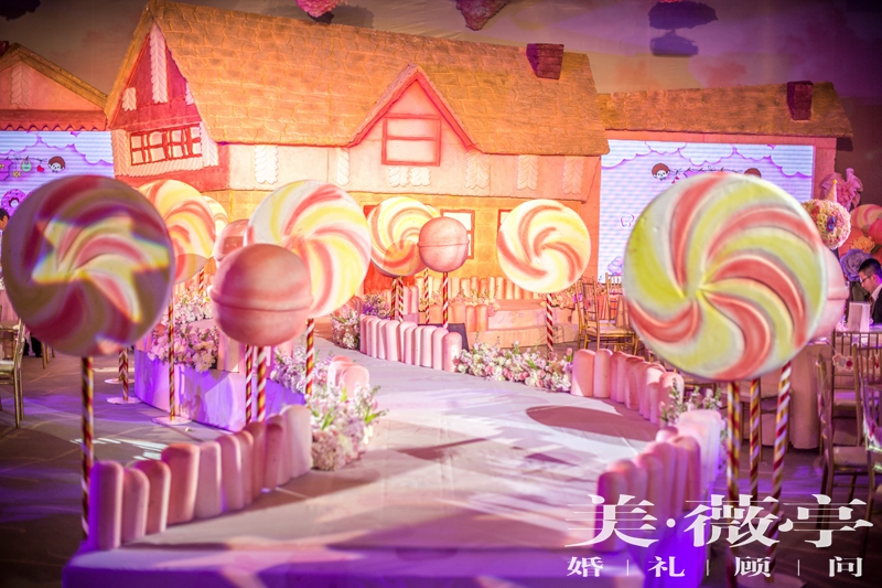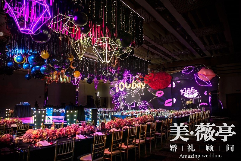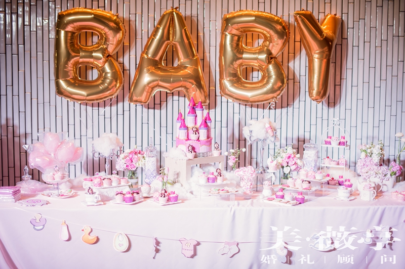 一个吻,在爱情的孕育下,萌芽升华成一个生命。他是爱的传承,也是诺言的守护。这是一场为新生命筹备的百日宴,所有的元素围绕着KISS展开。粉黑色的主调炫酷、大气。钻石香吻,满场飘香;天使独角兽,活灵活现。