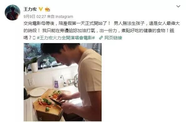2 9月9日,王力宏两个月陪产假的第一天,为了给老婆加油打气,自己动手做爱心餐。