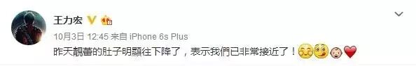 4 10月3日,王力宏在微博上表示:“昨天靓蕾的肚子明显往下降了,表示我们已非常接近了!”预产期临近,爸爸已经难掩心中的喜悦了!