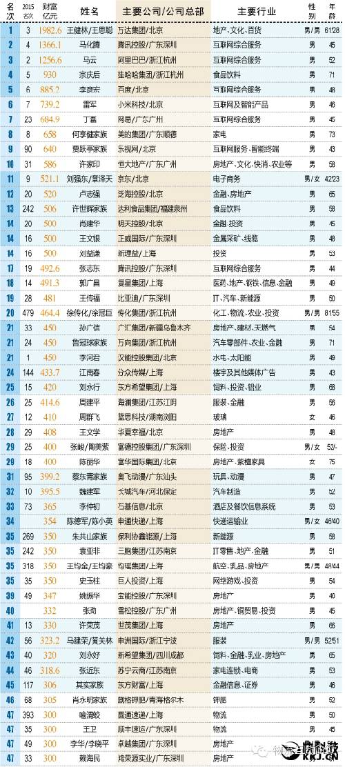 2016年“新财富500富人榜”的候选人需要满足4个条件:在中国成人、来自商界、个人财富不低于65亿元、主要业务在内地。
