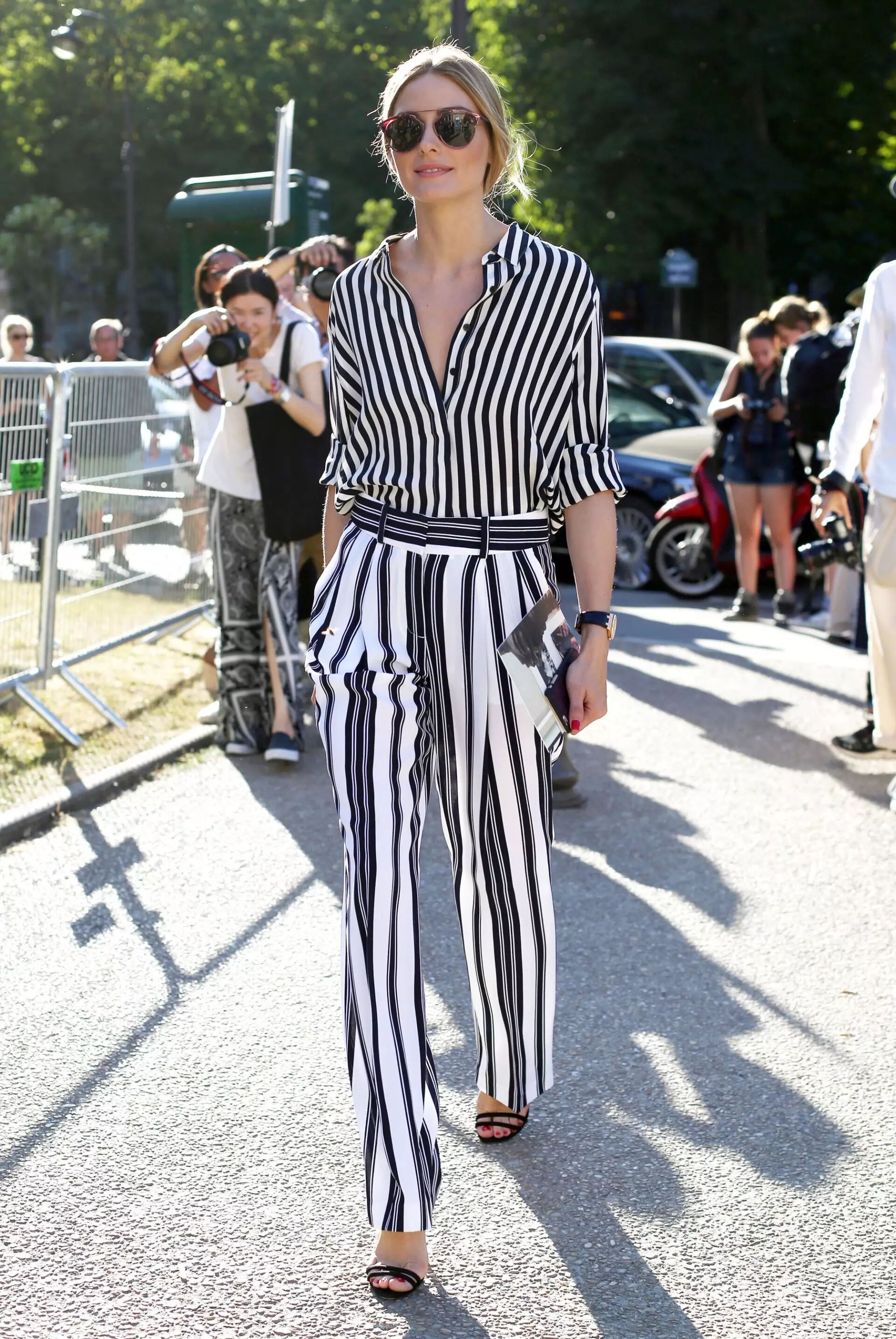 像贝嫂这种全身条纹混搭这样的穿搭看似简单,但着实胜在个性简洁又Chic。