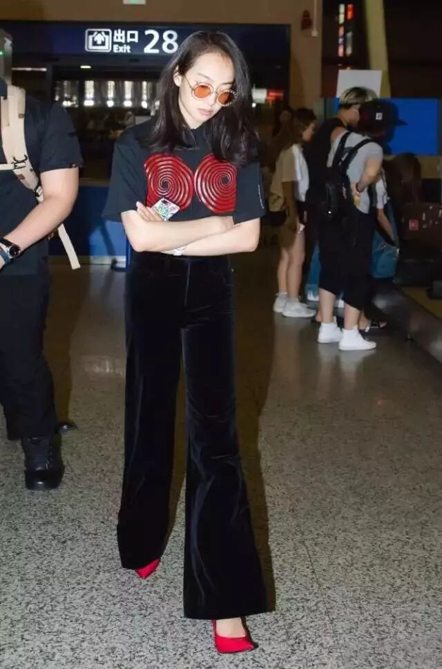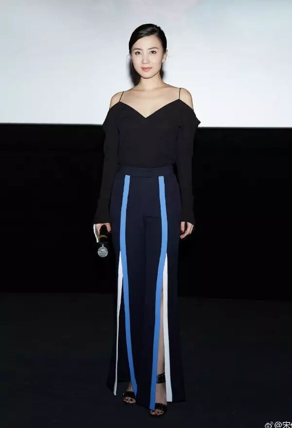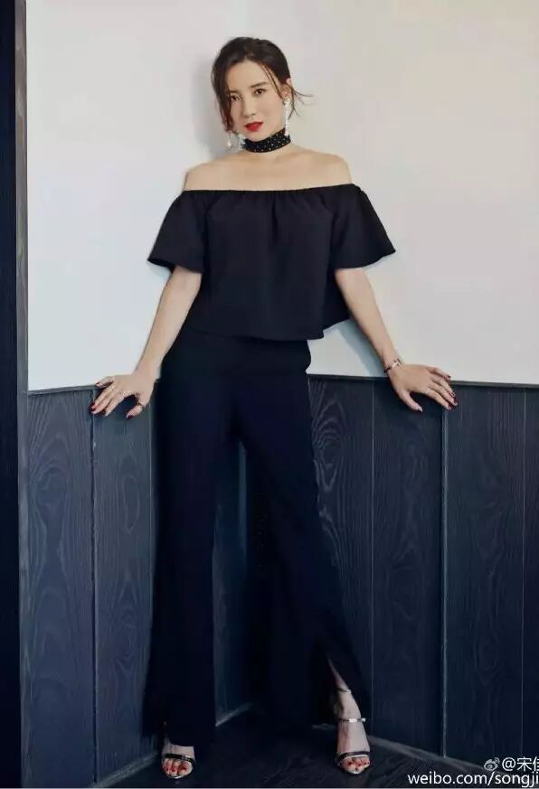 像宋佳就很爱叉阔腿裤,无论是搭配一字领露肩衫还是吊带露肩衫,都女王气场爆棚的赶脚。