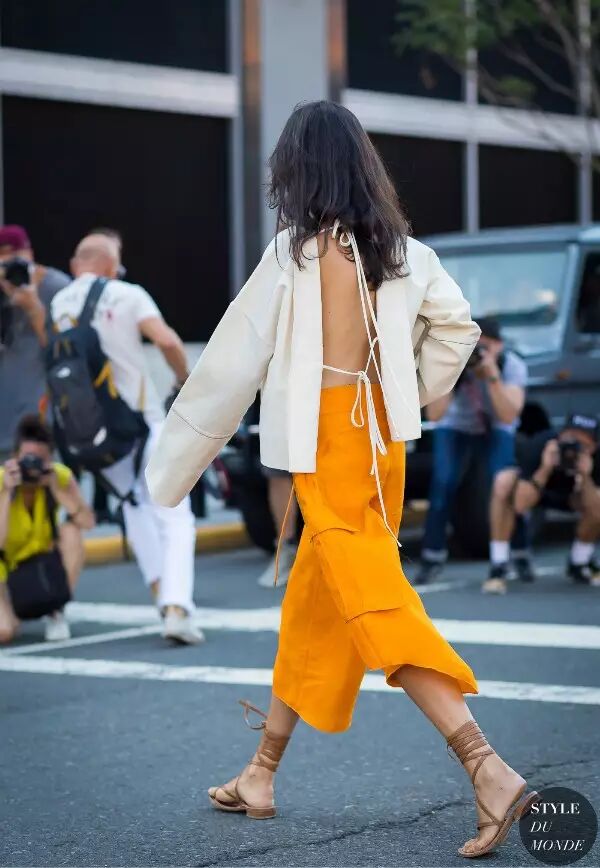 搭配近年来大热的绑带或露背top也会更又个性。