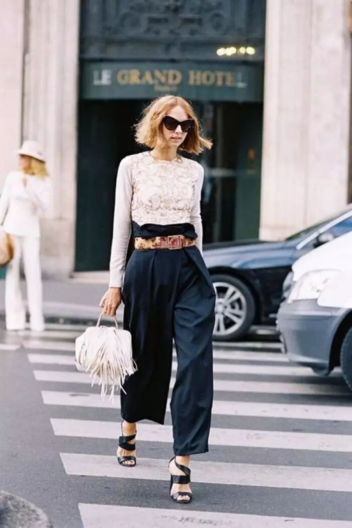 满大街的阔腿裤,搭配的都是T恤和衬衫,如果想要与众不同显高级,就要记住以下案例!