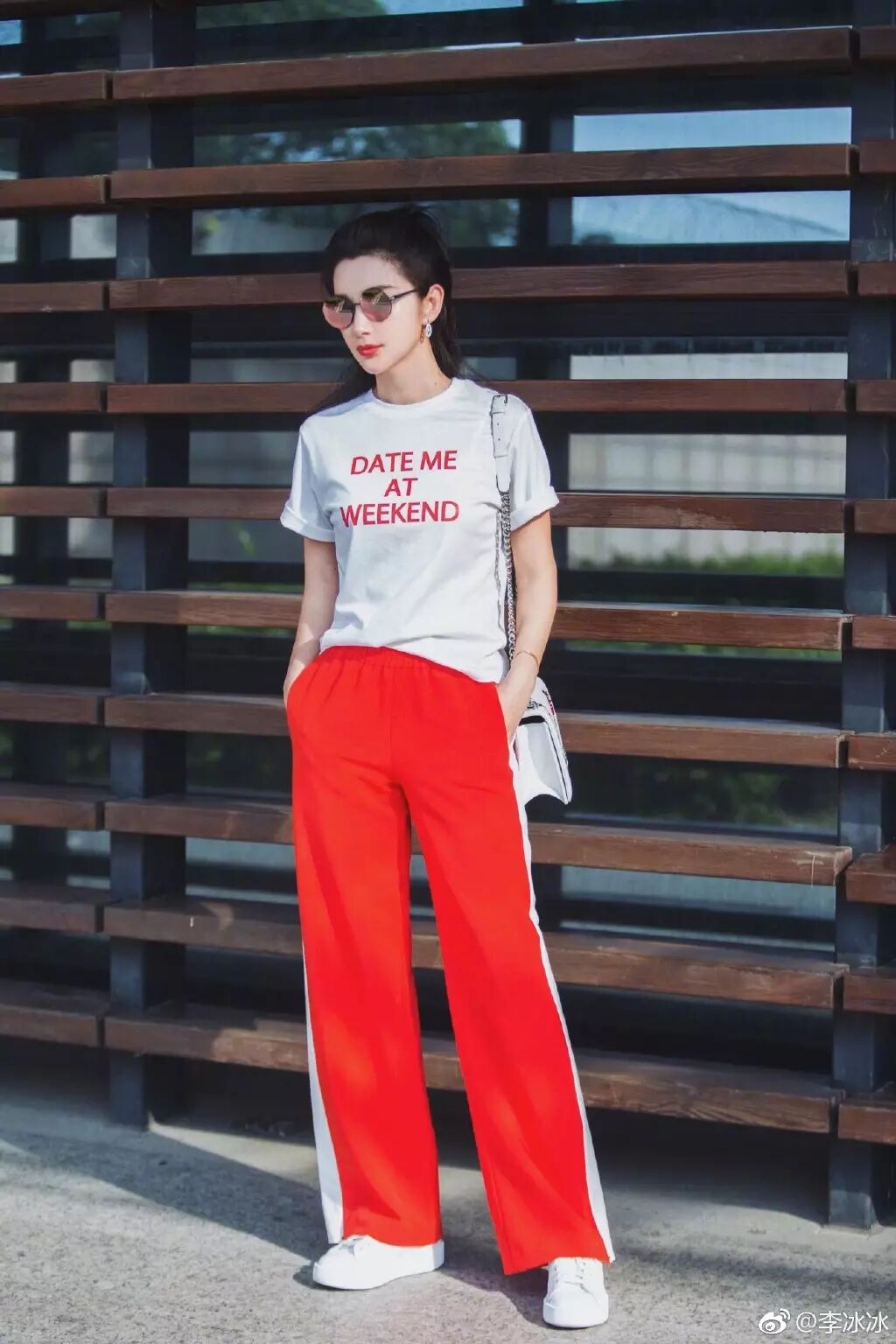 李冰冰穿起侧条纹阔腿裤+白T,完全是逆生长的童颜了好么?
