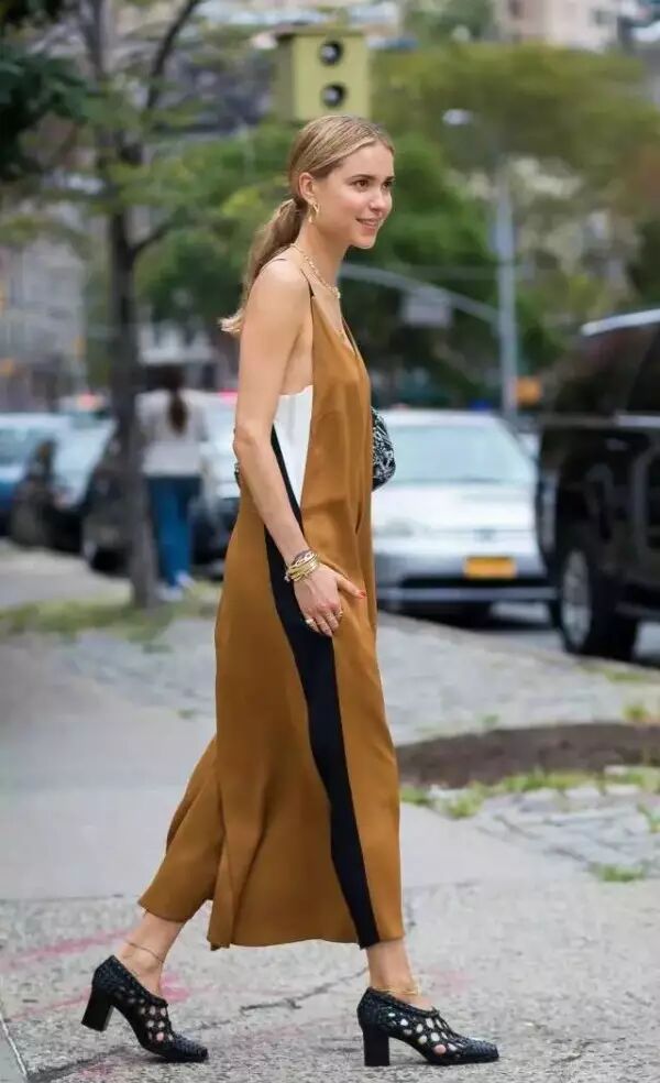 选择小腿部位开衩的会比较实用,搭配平底鞋还是高跟鞋都很合适。